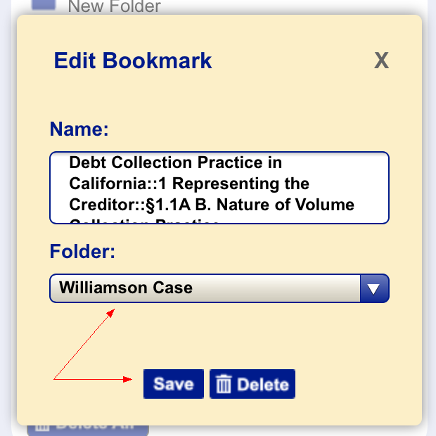 After you have bookmarked a document, you may edit its name and location. From the Bookmarks page: