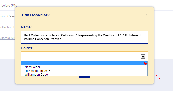 Note: You are not able to bookmark a particular section more than once or use a duplicate bookmark name within the same folder. However, you may bookmark a section more than once within the Main Directory.